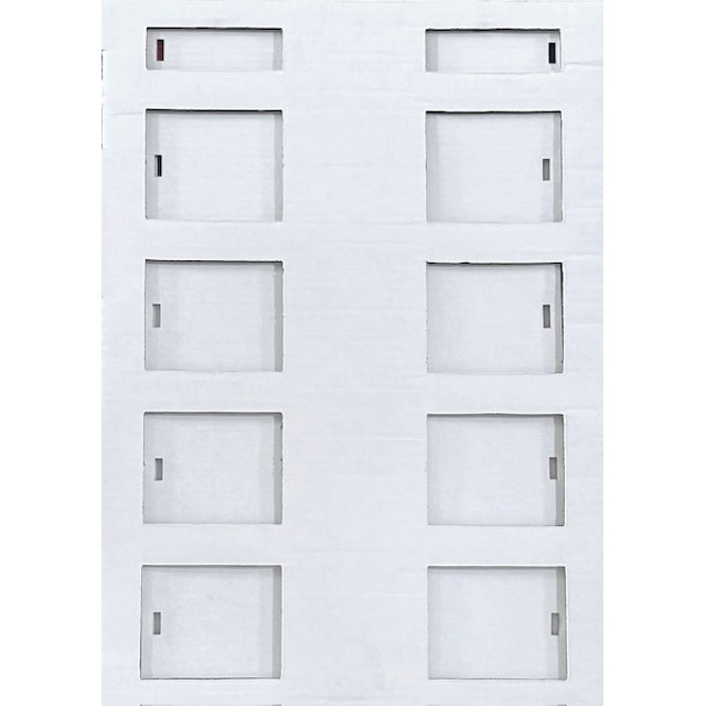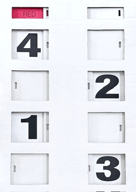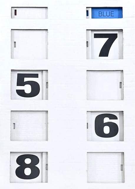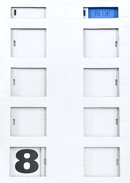 The CLOS Series 1 is a 10-door reconfigurable training aid. Two doors on top reveal the colors “red” and “blue” when the doors are moved inward. The eight doors below reveal a number or a letter, depending on the version, when moved inward. The CLOS Series 1 can expose up to 4 numbers/letters and one color at a time making training increasingly difficult and highly versatile.